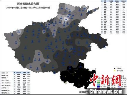 2024年1月31日8時至2月5日6時河南省降水量實況。河南省氣象局制圖
