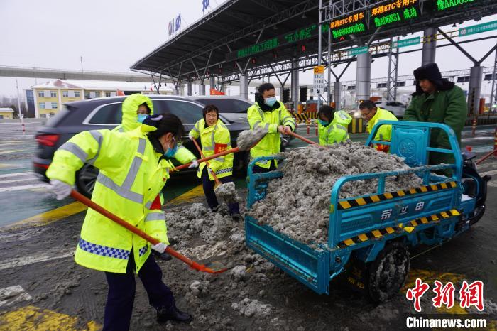 圖為2月1日,路政工作人員在鄭州機場高速鄭州南站除雪。中新網(wǎng)記者 韓章云 攝