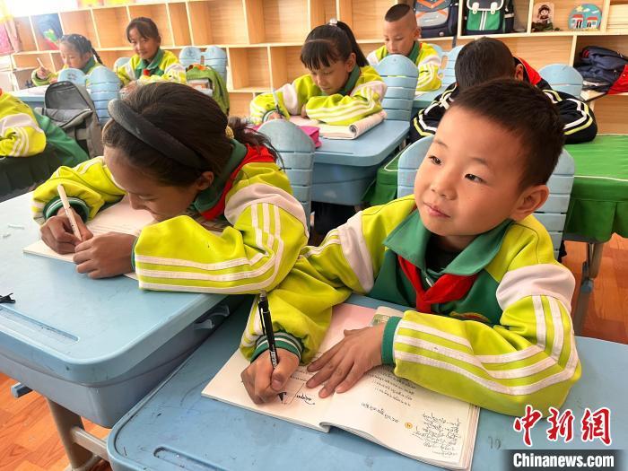 與此同時(shí),四年級(jí)2班的漢族學(xué)生劉念恩正在上藏語(yǔ)文課,他抄寫有些慢,同桌的女生立刻用筆幫他找到對(duì)照位置。“我們班只有我一個(gè)漢族,我也要上藏語(yǔ)文課,同學(xué)們和我關(guān)系非常好,我們經(jīng)常一起踢足球。”劉念恩說。