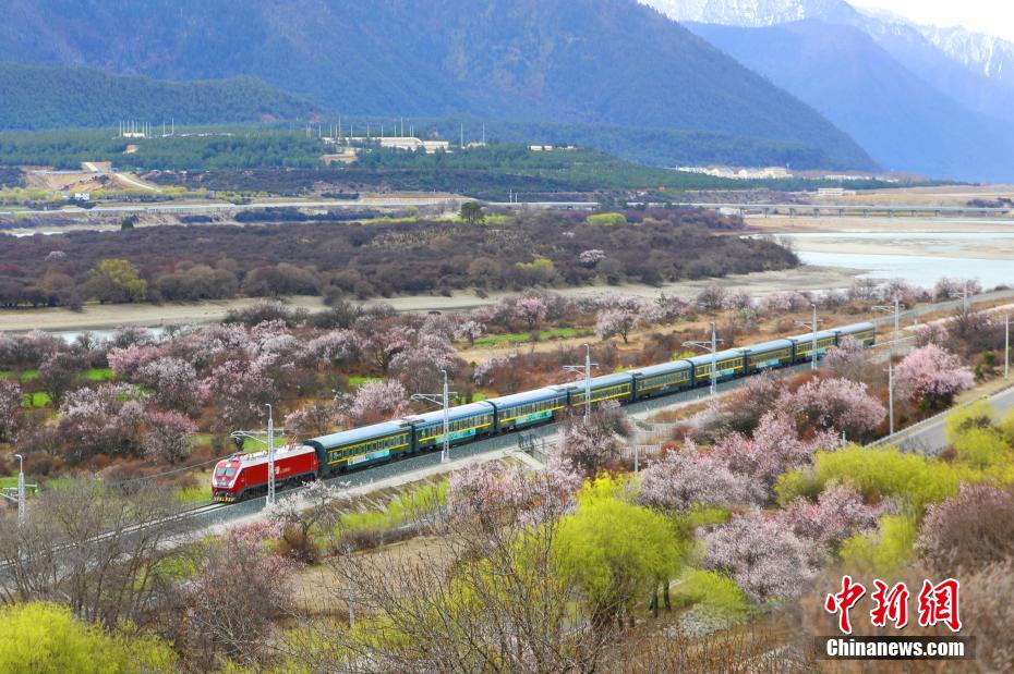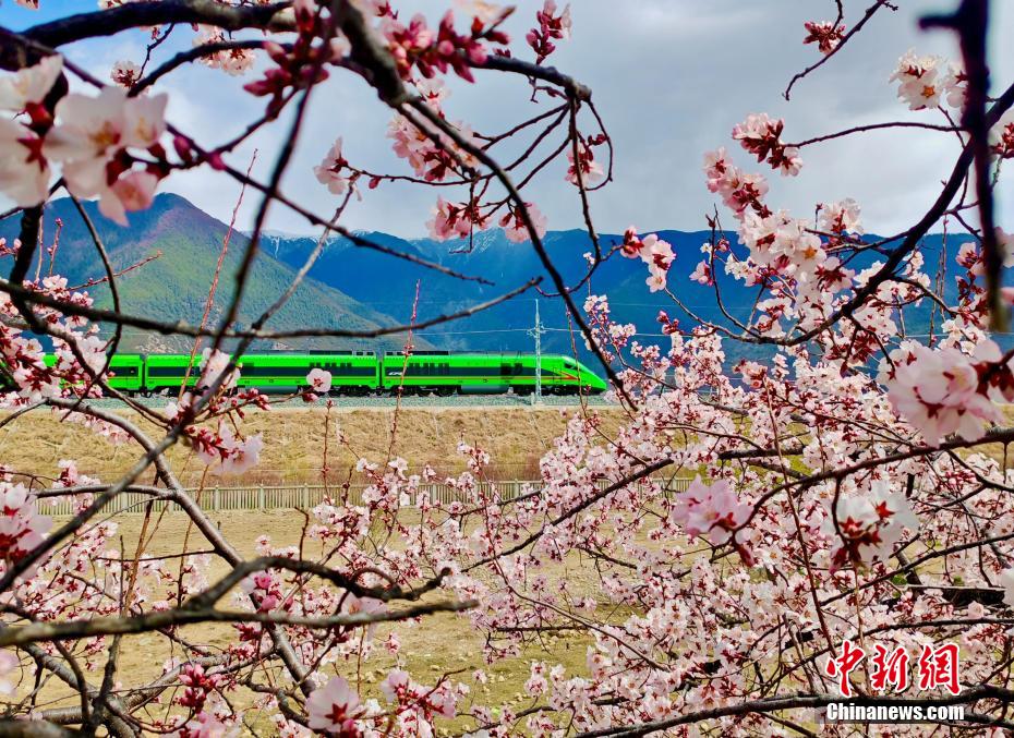 四月伊始,拉林鐵路沿線的桃花迎來了盛開時節(jié),藍(lán)天白云下,一朵朵桃花漲紅了臉頰,與遠(yuǎn)處的雪山交相輝映,吸引了不少游客來感受高原春天的獨特魅力。當(dāng)一列列火車穿過花海,映入眼簾的皆是滿山遍野的桃花,讓人仿佛置身于秀美的江南之中。圖為拉林鐵路沿線桃花盛開。