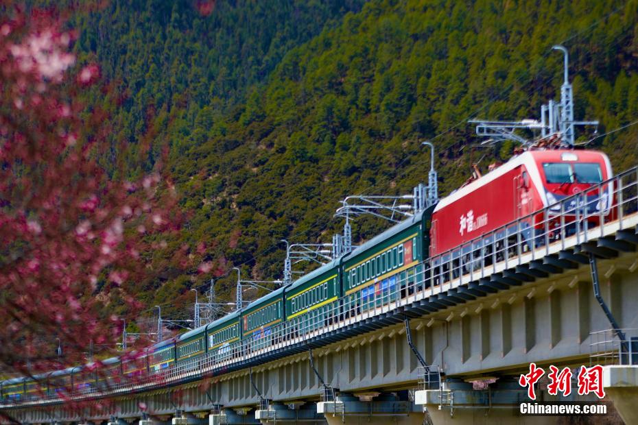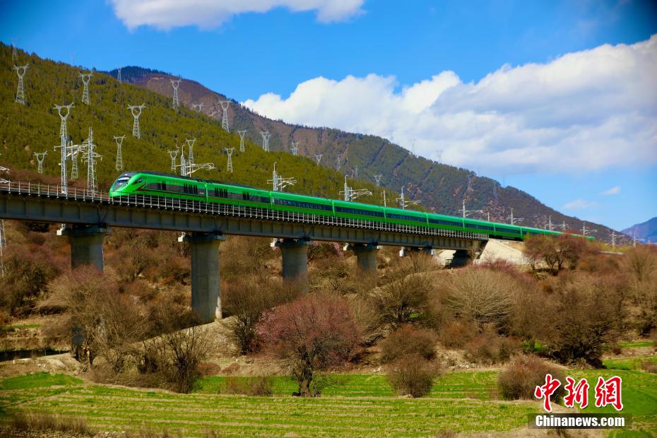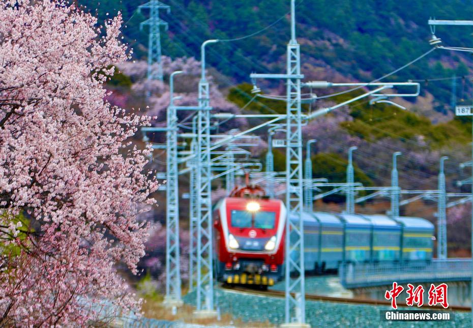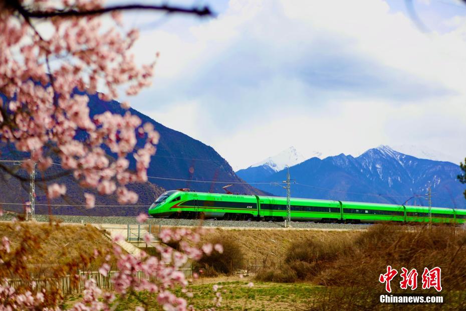 被譽(yù)為新“天路”的拉林鐵路,是中國首條高原電氣化鐵路,于2021年6月25日開通運(yùn)營,結(jié)束了西藏東南地區(qū)不通鐵路的歷史。圖為拉林鐵路沿線桃花盛開,與飛馳而過的動車構(gòu)成別樣風(fēng)景圖。