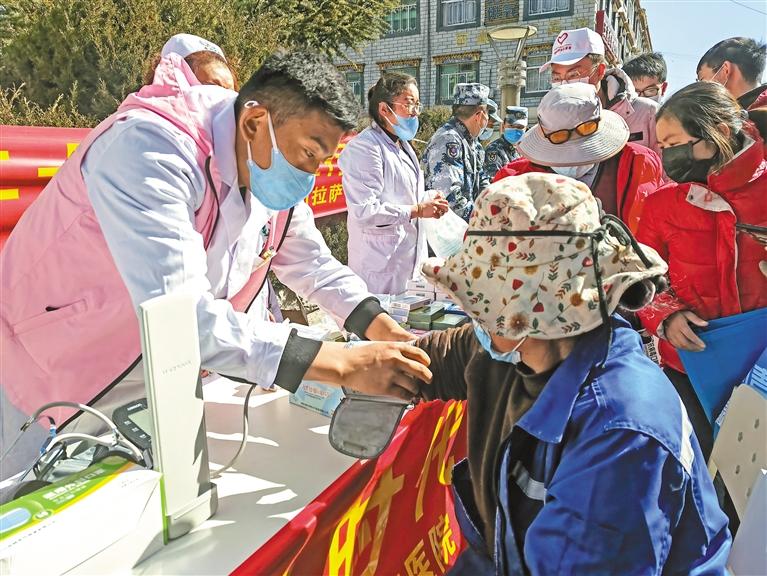 當日,西藏拉薩警備區(qū)組織200余名官兵通過以工代勤的方式,深入大昭寺、八廓街道等地開展“學(xué)習(xí)雷鋒精神、喜迎黨的二十大”主題活動。活動主要包括義務(wù)巡診、發(fā)放藥品、清潔衛(wèi)生、消毒、理發(fā)等十余項。