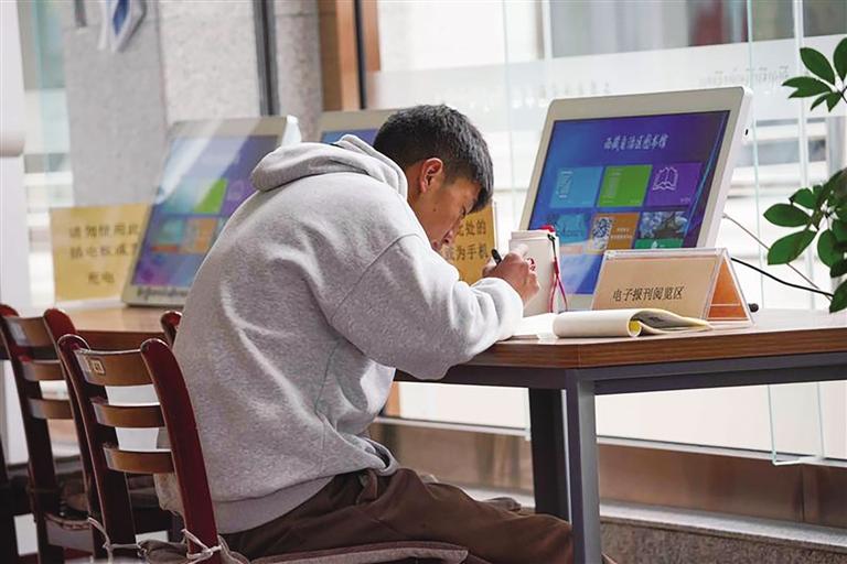 在西藏自治區(qū)圖書館閱讀的讀者。記者 阿旺尼瑪 攝