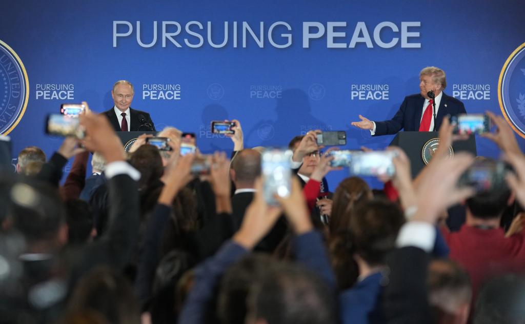 8月15日,美國(guó)總統(tǒng)特朗普(右)與俄羅斯總統(tǒng)普京在美國(guó)阿拉斯加州安克雷奇市埃爾門(mén)多夫-理查森聯(lián)合軍事基地舉行會(huì)晤后共同出席聯(lián)合記者會(huì)。新華社記者吳曉凌攝