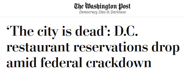 美國首都被“軍管”的這幾天,犯罪率有沒有打下來,民主共和兩黨各說各話;但眾多當?shù)夭蛷d公開抱怨,餐飲業(yè)營收因美國政府的“執(zhí)法行動”遭受了重大打擊,“今年8月對華盛頓的餐廳來說格外艱難”。