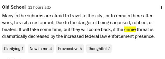 《華盛頓郵報》這篇名為“這個城市死了”的文章引發(fā)美國人激烈討論,讀者們在評論區(qū)留下了890多條評論,有批評軍隊上街的,有支持打擊犯罪的,也有吐槽當?shù)仫埖甑摹?/p>