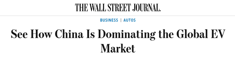 《華爾街日報》9月17日發(fā)表文章稱,在電動汽車領域,“中國制造”的足跡在不斷擴大,目前已占全球電動汽車銷量的一半以上。