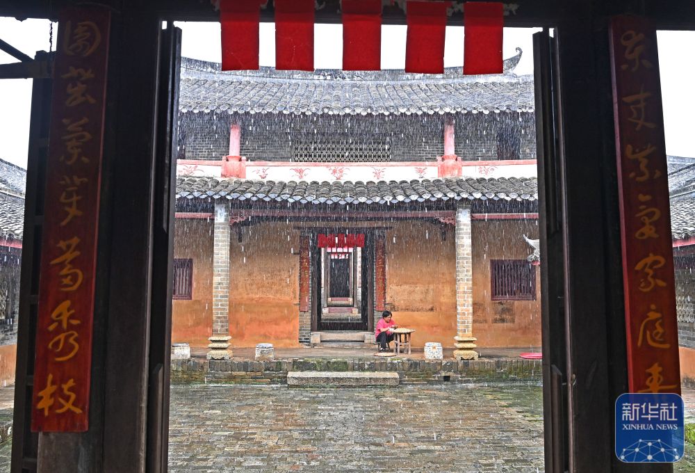 8月15日,一名村民在大蘆村古宅里打掃。
