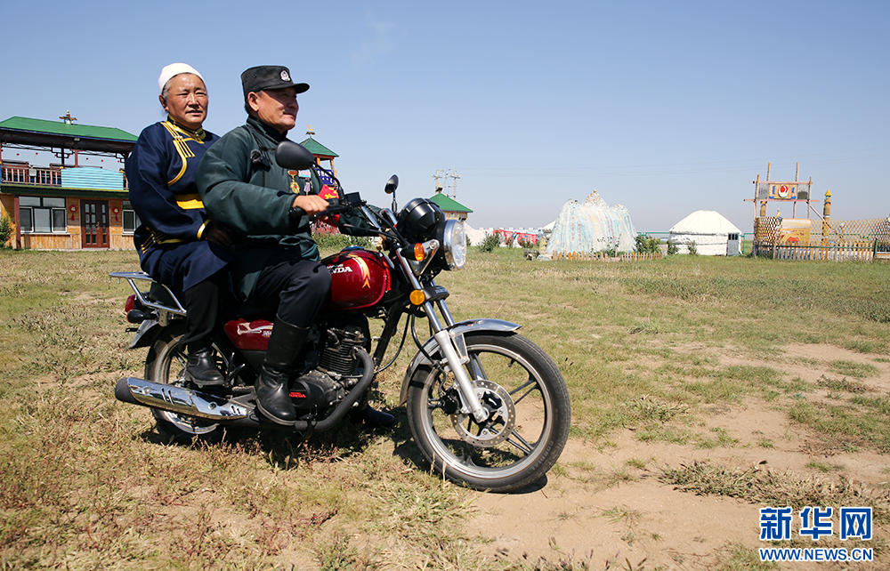 8月27日,圖門和妻子索麗從院子里騎著摩托車出發(fā)去巡邊。新華網(wǎng)石毅 攝