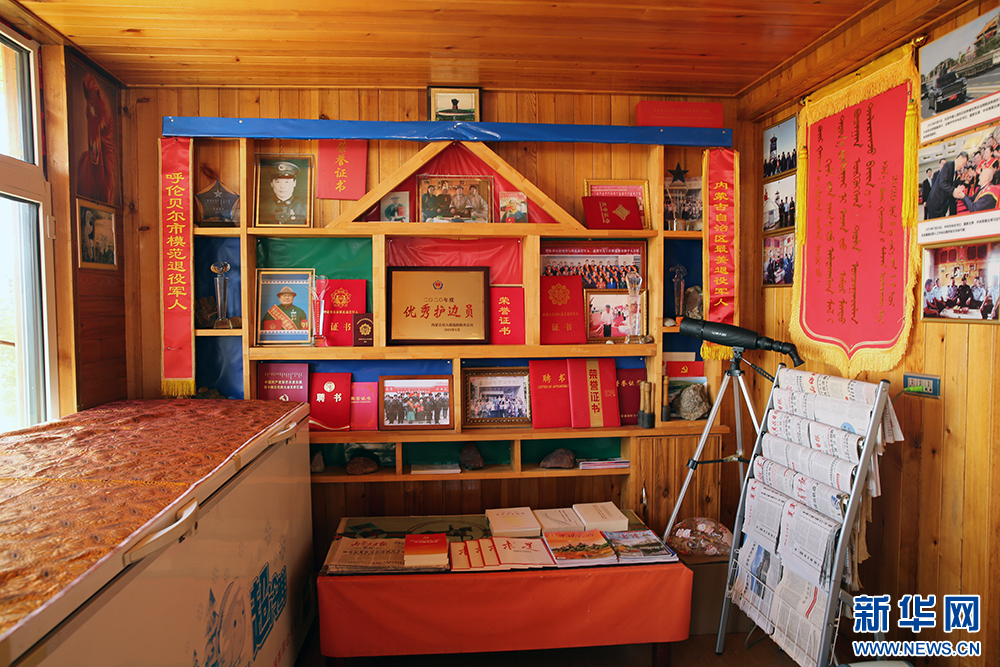 圖門家墻壁上,擺滿了一家三代戍邊的照片和榮譽(yù)證書。新華網(wǎng)石毅 攝