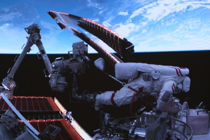 2024年11月4日,神舟十八號(hào)航天員李廣蘇安全順利出艙。新華社記者 李志鵬 攝