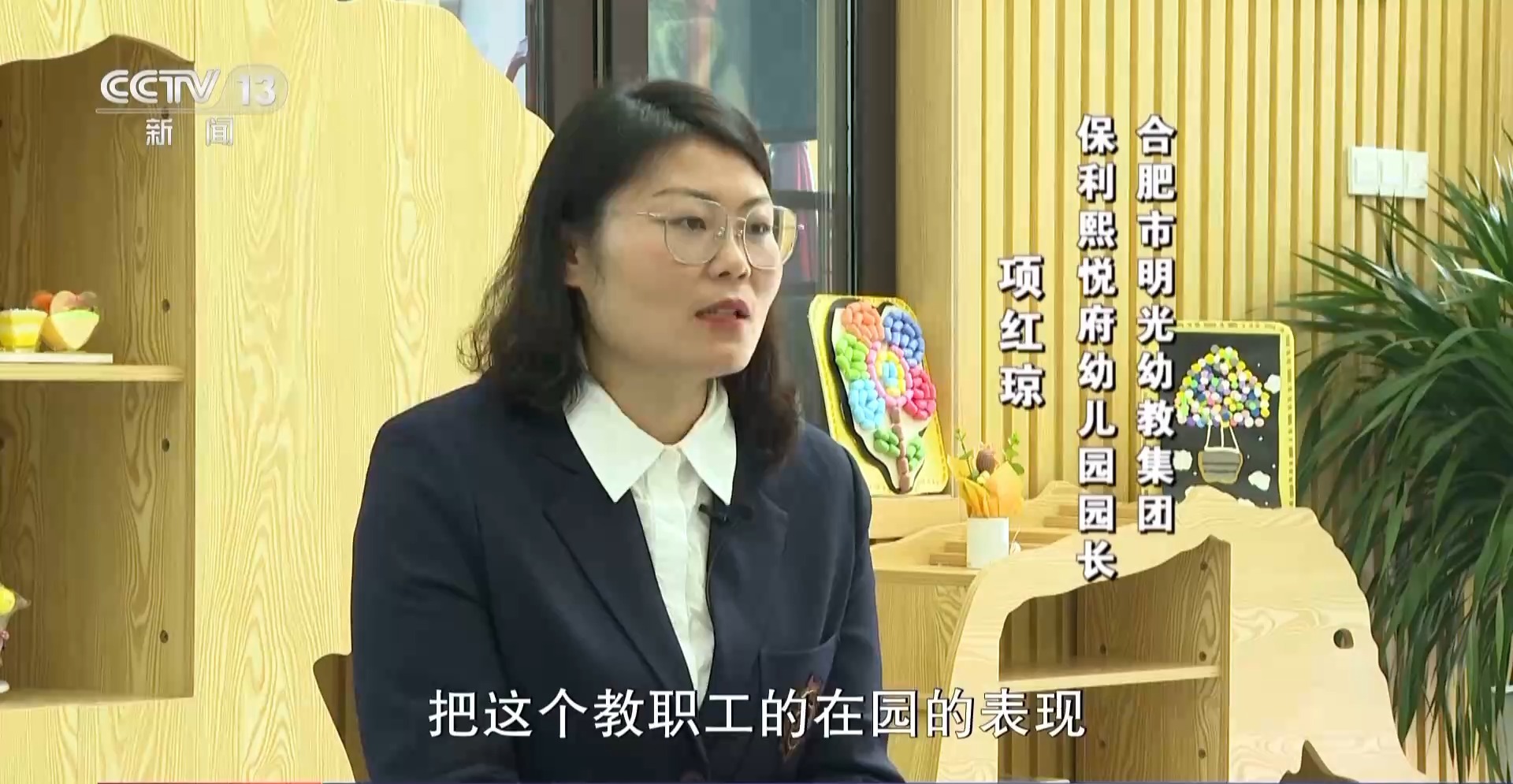 合肥市明光幼教集團保利熙悅府幼兒園園長 項紅瓊:在招聘老師的時候,都會很謹慎和每一位老師溝通很長一段時間。很擔心會招來以后,應聘者有一些我們沒有關注的點,但是這些行為卻傷害到了我們的孩子。