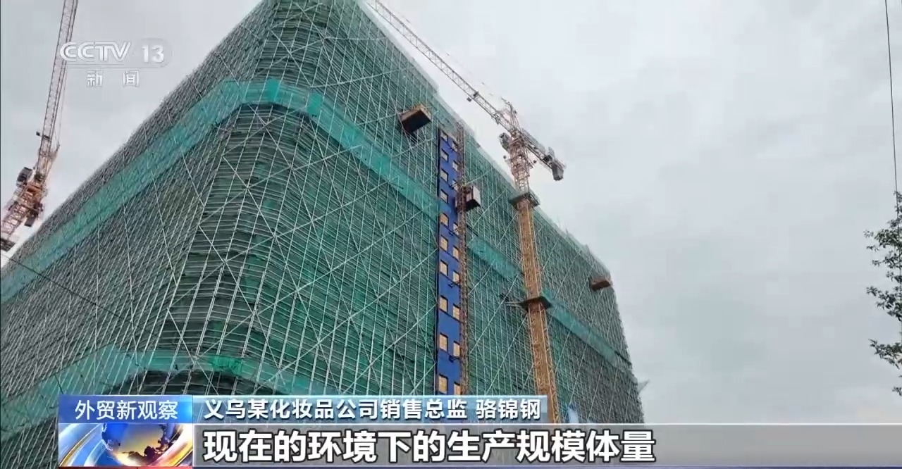 義烏某化妝品公司銷售總監(jiān) 駱錦鋼:我們這個園區(qū)幾乎是每個工廠都在改擴(kuò)建,主要是因?yàn)樵瓉淼睦吓f廠房已經(jīng)是不適合現(xiàn)在的環(huán)境下的生產(chǎn)規(guī)模體量,根據(jù)現(xiàn)在的復(fù)雜環(huán)境,在練內(nèi)功,所以未來的企業(yè)會打造成智能化、數(shù)字化更高端的這種生產(chǎn)型企業(yè)。