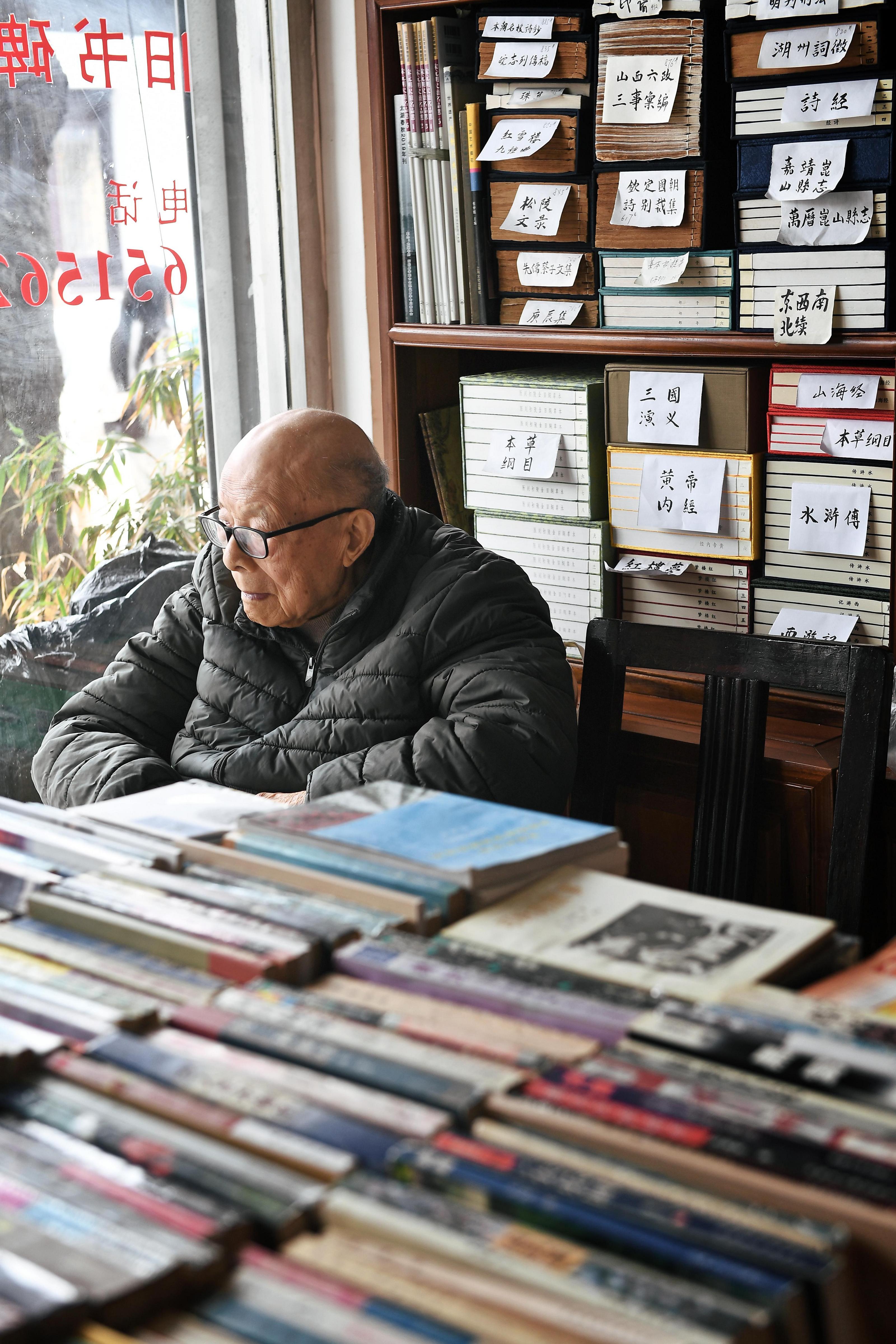 “我守的是書呀?!苯尾ù?。他說,坐在書店里,他就安心,一天不摸舊書,他心里就不踏實。