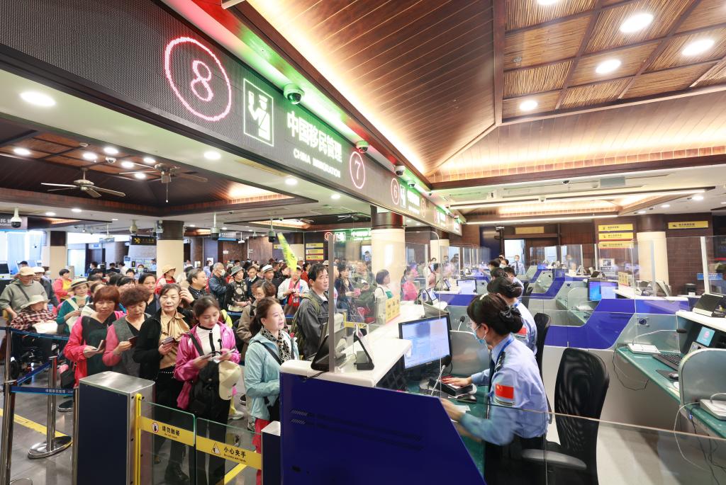 1月3日,在三亞鳳凰島國際郵輪港口岸,邊檢部門為郵輪旅客辦理通關手續(xù)。(楊冠宇 攝)