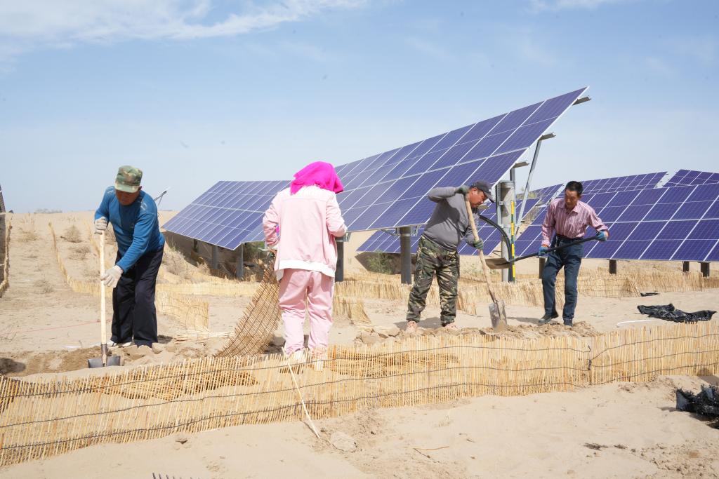 據(jù)介紹,該項(xiàng)目預(yù)計(jì)于6月底具備并網(wǎng)發(fā)電條件,投產(chǎn)運(yùn)行后年發(fā)電量達(dá)3.6億千瓦時(shí),配套治理沙地2.4萬畝。新華林場場長賀鑫說:“在開展‘三北’工程攻堅(jiān)戰(zhàn)以來,我們采取‘以工代賑’形式,組織周邊村民參與光伏項(xiàng)目建設(shè)、林草種植等全流程作業(yè),參與農(nóng)民的人數(shù)超過2000人?!?/p>