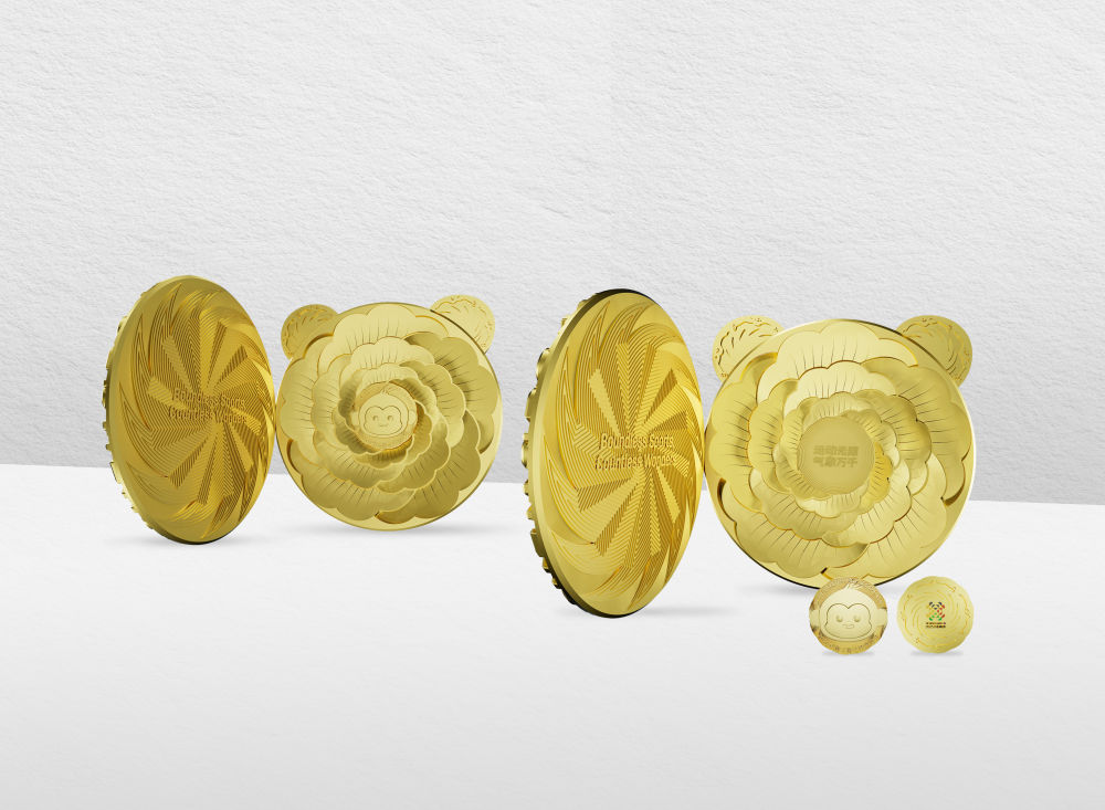 此外,“竹光”以其精巧的內(nèi)部結(jié)構(gòu)引人矚目,詮釋了“分享”的核心理念。輕輕向左翻開獎牌正面,一枚獨(dú)特的金屬質(zhì)徽章便呈現(xiàn)眼前:一面是靈動的川金絲猴“錦仔”,另一面則由太陽神鳥環(huán)繞成都世運(yùn)會會徽。