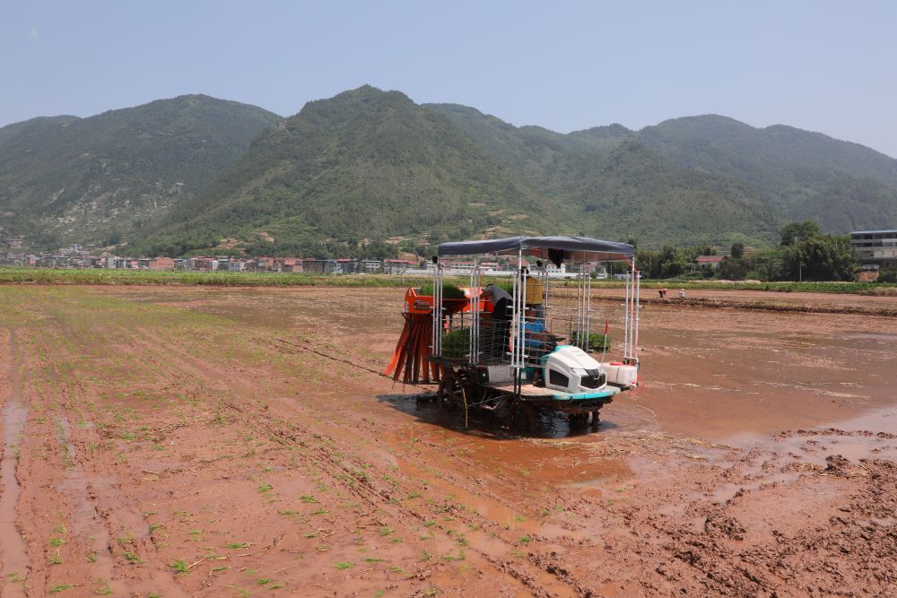 重慶市巫山縣廟宇鎮(zhèn)進(jìn)行機(jī)械化插秧。受訪者供圖