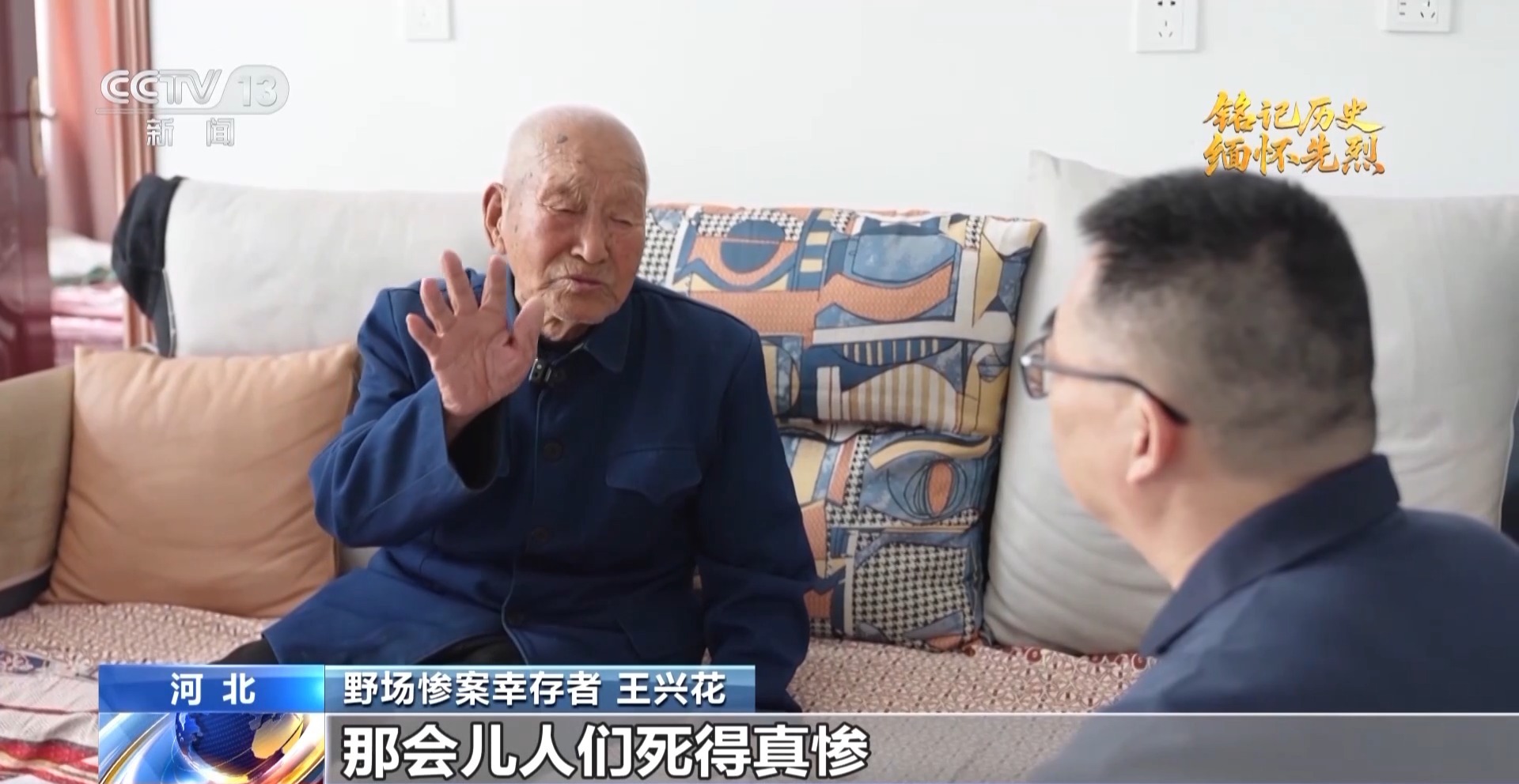 野場慘案幸存者 王興花:那會(huì)兒人們死得真慘。日軍頭一次問,八路軍東西在哪兒,都說不知道,第二次還問還是這一套,第三次日軍說,說了你們就能活,要不說統(tǒng)統(tǒng)開槍滅掉你們,王璞站起來說不知道,大家伙一致說不知道。