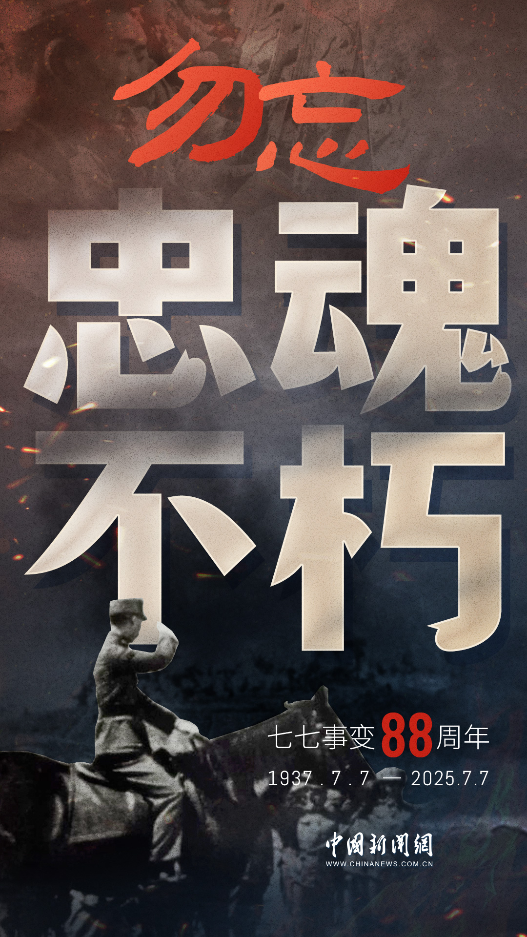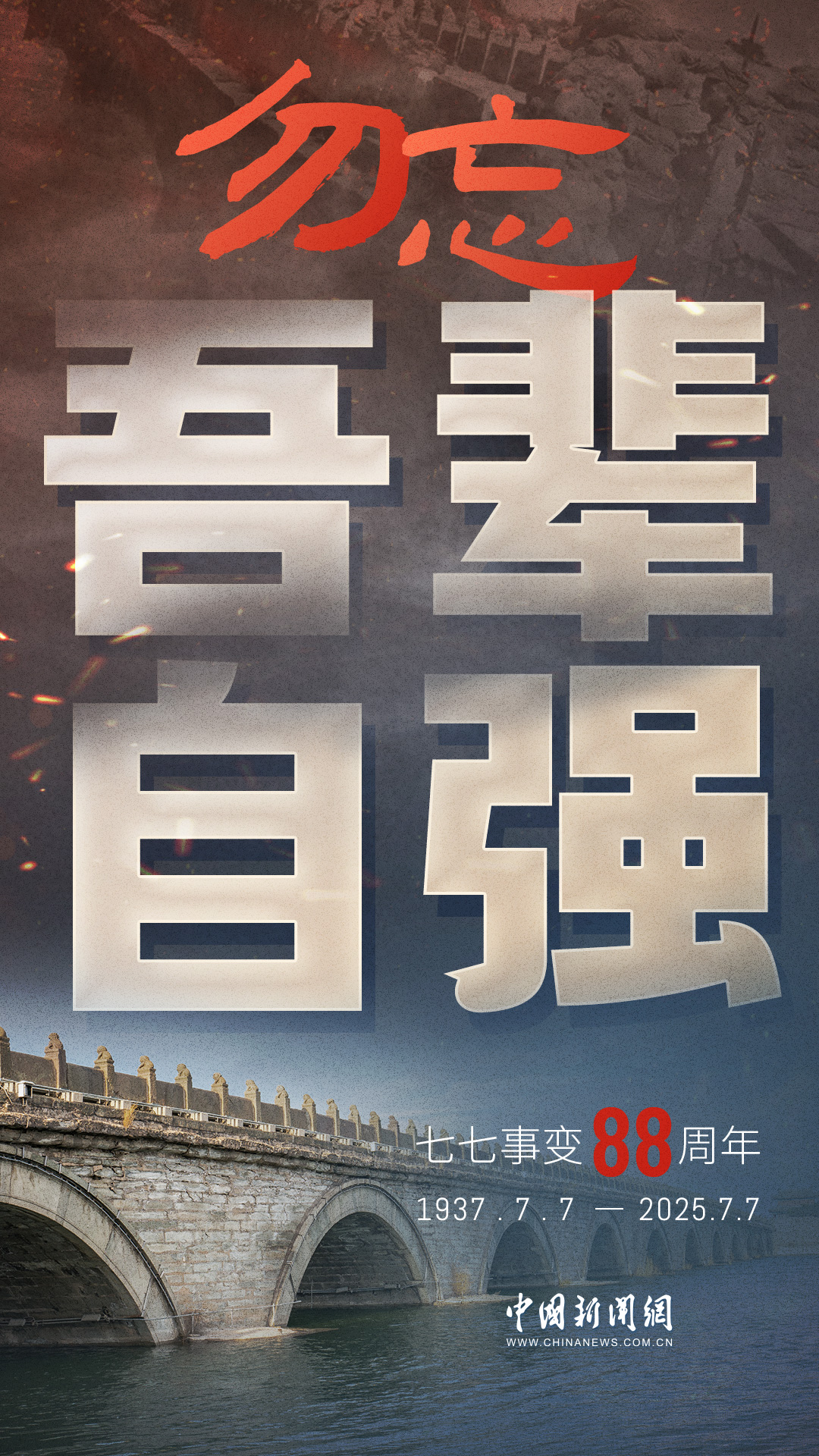 1937年7月7日,盧溝橋的槍聲撕裂長夜,中華兒女赴湯蹈火,以血肉之軀筑起御敵長城。88載歲月流轉(zhuǎn),硝煙雖散,彈痕猶在,那段浸透血淚的歷史,是刻在民族記憶里永不褪色的烙印。今日山河錦繡,國泰民安,正是先烈用生命換來的盛世。七七事變88周年,致敬英烈,銘記國殤,吾輩自強,護山河無恙!