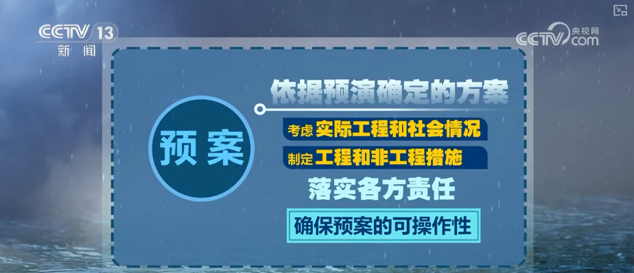 預案是依據預演確定的方案,考慮實際工程和社會情況,制定工程和非工程措施,落實各方責任,確保預案的可操作性。