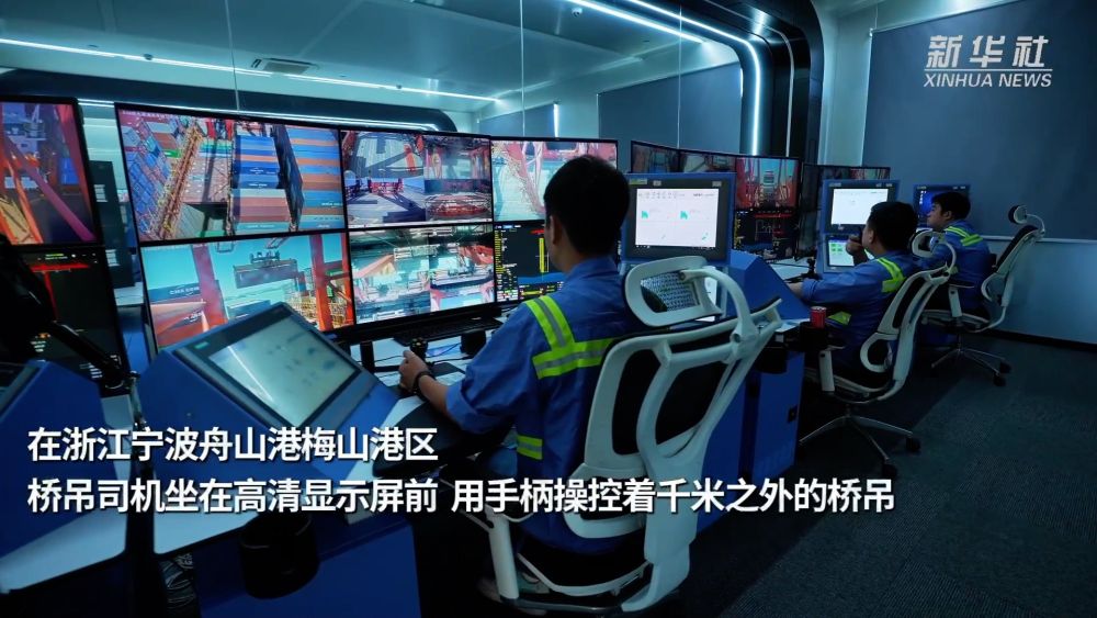 在浙江寧波舟山港梅山港區(qū),橋吊司機坐在高清顯示屏前,用手柄即可操控著千米之外的橋吊,這一變革得益于港區(qū)打造的大規(guī)模遠控自動化作業(yè)集群。