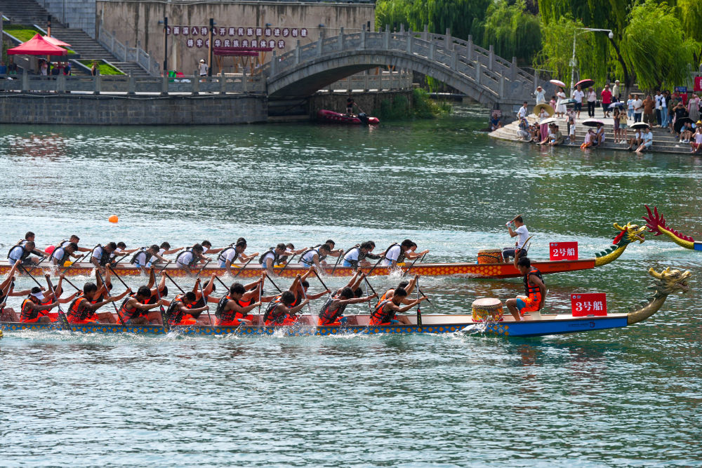 7月19日,龍舟隊伍在鎮(zhèn)遠縣?陽河上比賽。新華社發(fā)(龍建睿攝)