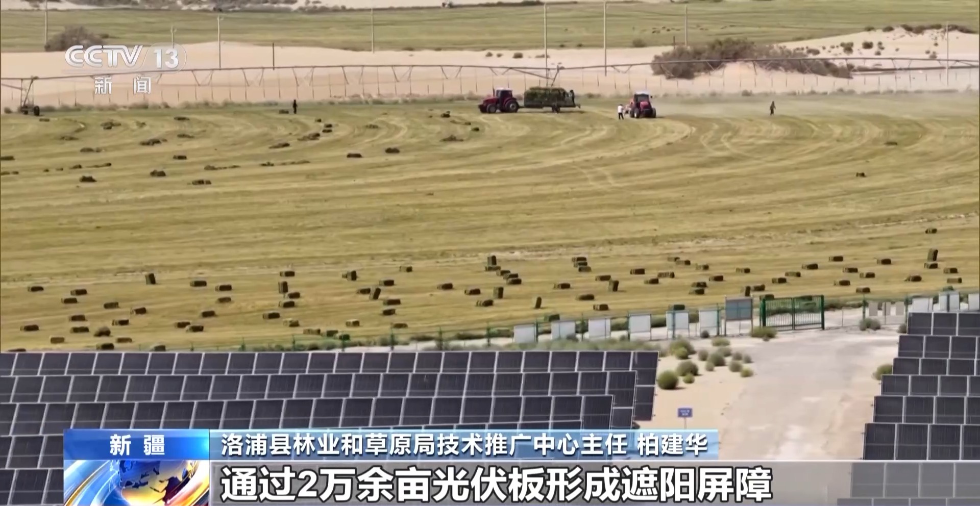 洛浦縣林業(yè)和草原局技術推廣中心主任 柏建華:光伏板不僅能發(fā)電,還改變了沙漠生態(tài)。通過2萬余畝光伏板形成遮陽屏障,使地表溫度下降3~5℃,降低了沙漠水汽蒸發(fā),土壤含水率提升20%左右,作物存活率顯著提高。