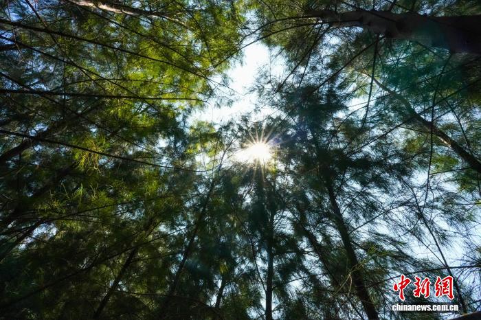 在某島礁,官兵培育的植物種類已達(dá)120余種,植被覆蓋率超過90%,成片的木麻黃林、抗風(fēng)桐林、大葉欖仁樹林鱗次櫛比地分布在各個(gè)角落,林下土壤表層出現(xiàn)了落葉和枯草形成的腐殖質(zhì),喬、灌、草銜接互補(bǔ)的森林植物群落生長(zhǎng)格局正在加速形成。