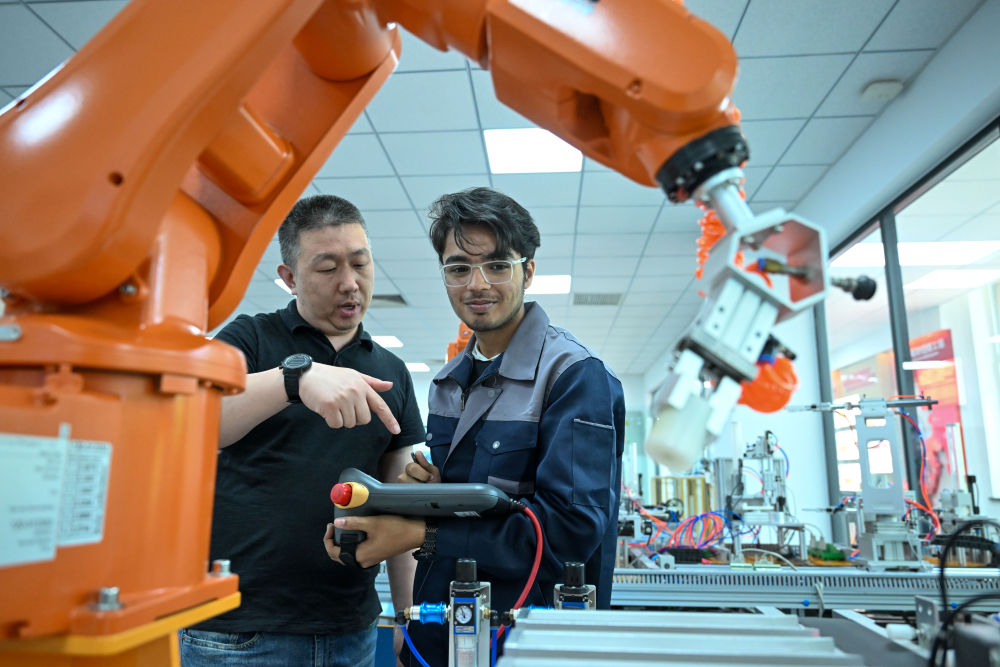 2018年7月,由天津與巴基斯坦合作共建的巴基斯坦魯班工坊正式揭牌,迄今已累計培訓(xùn)1000余人次。2024年9月,搭乘魯班工坊的機(jī)遇快車,成績優(yōu)異的穆杉獲得獎學(xué)金,到天津求學(xué)。