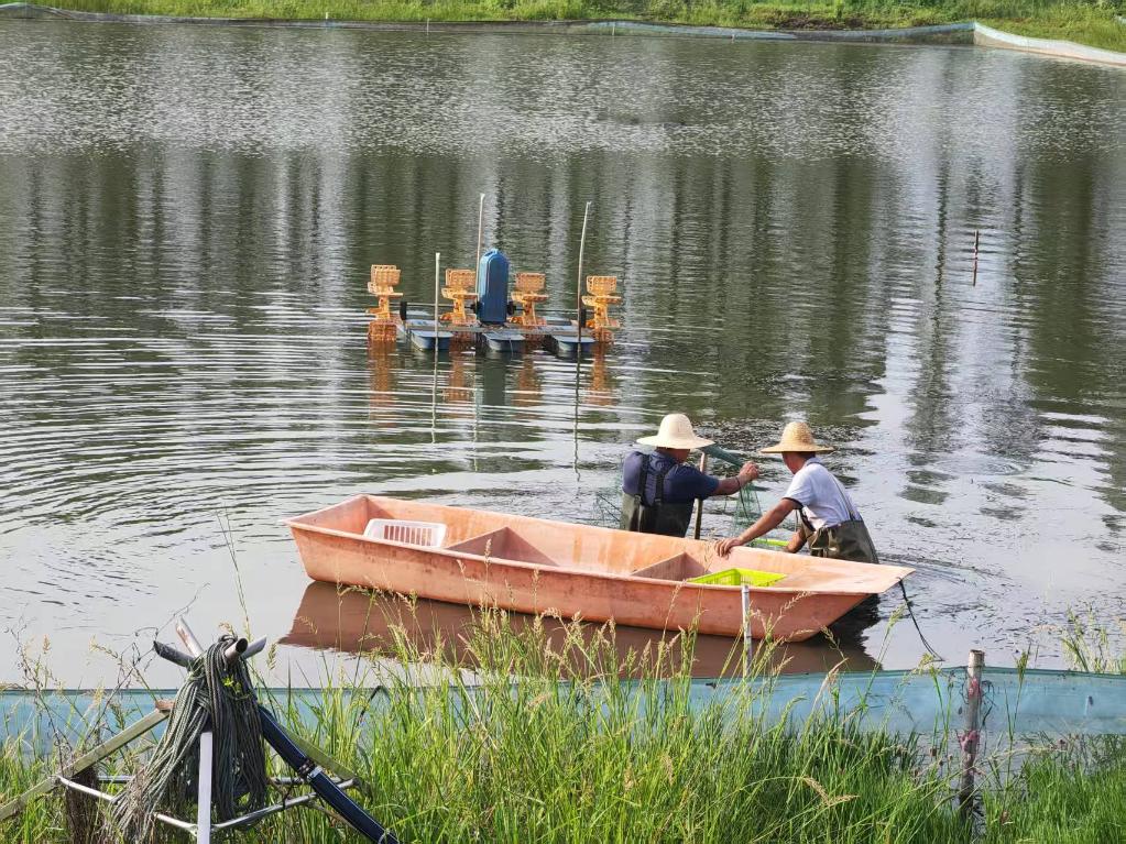 在潛江市后湖管理區(qū)張家窯辦事處的一處池塘里,養(yǎng)殖戶李福建劃著小船收起一籠籠小龍蝦。不久前,他還向自己的33畝蝦塘投放了今年第四茬小龍蝦苗,預(yù)計在冬天上市。