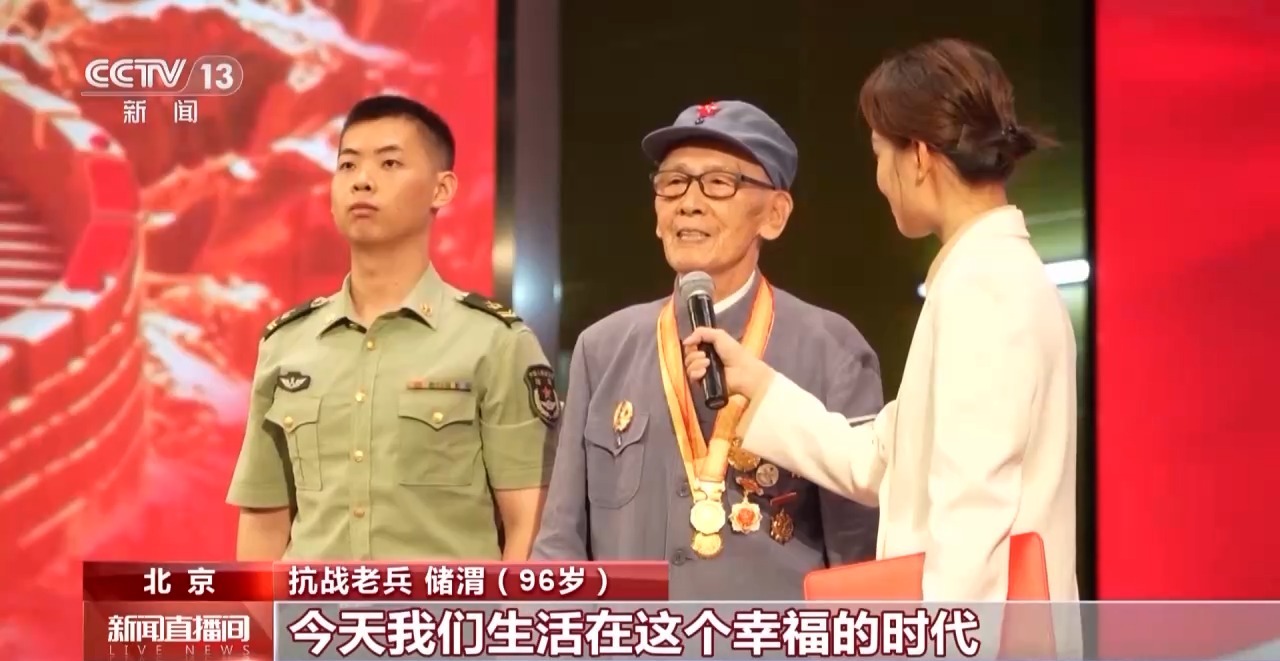 抗戰(zhàn)老兵 儲渭(96歲):我當兵的時候不到15歲,現(xiàn)在老戰(zhàn)友已經(jīng)不太多了。經(jīng)歷了14年的抗日戰(zhàn)爭,今天我們生活在幸福的時代,這是黨的關懷,這是我們不能忘記的。