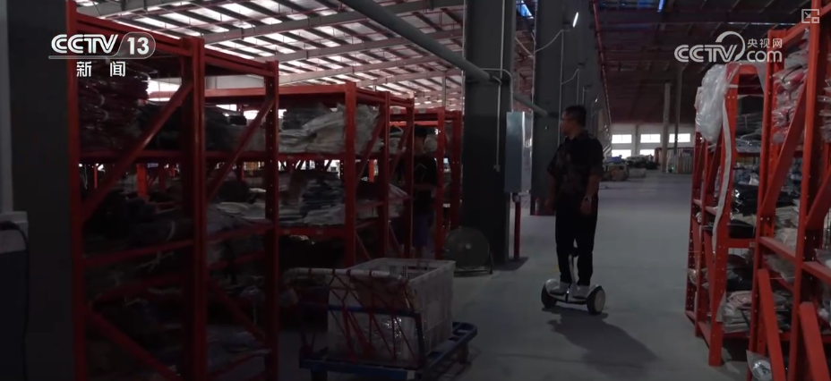 當(dāng)記者在天門服裝產(chǎn)業(yè)園里碰到費(fèi)文的時候,他正騎著電動平衡車在庫房的貨架之間來回穿梭。