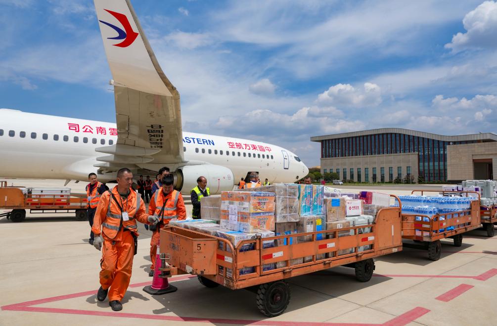 這是2025年4月19日在昆明長水機(jī)場拍攝的中國政府援緬衛(wèi)生防疫隊(duì)攜帶的物資。新華社記者 陳欣波 攝