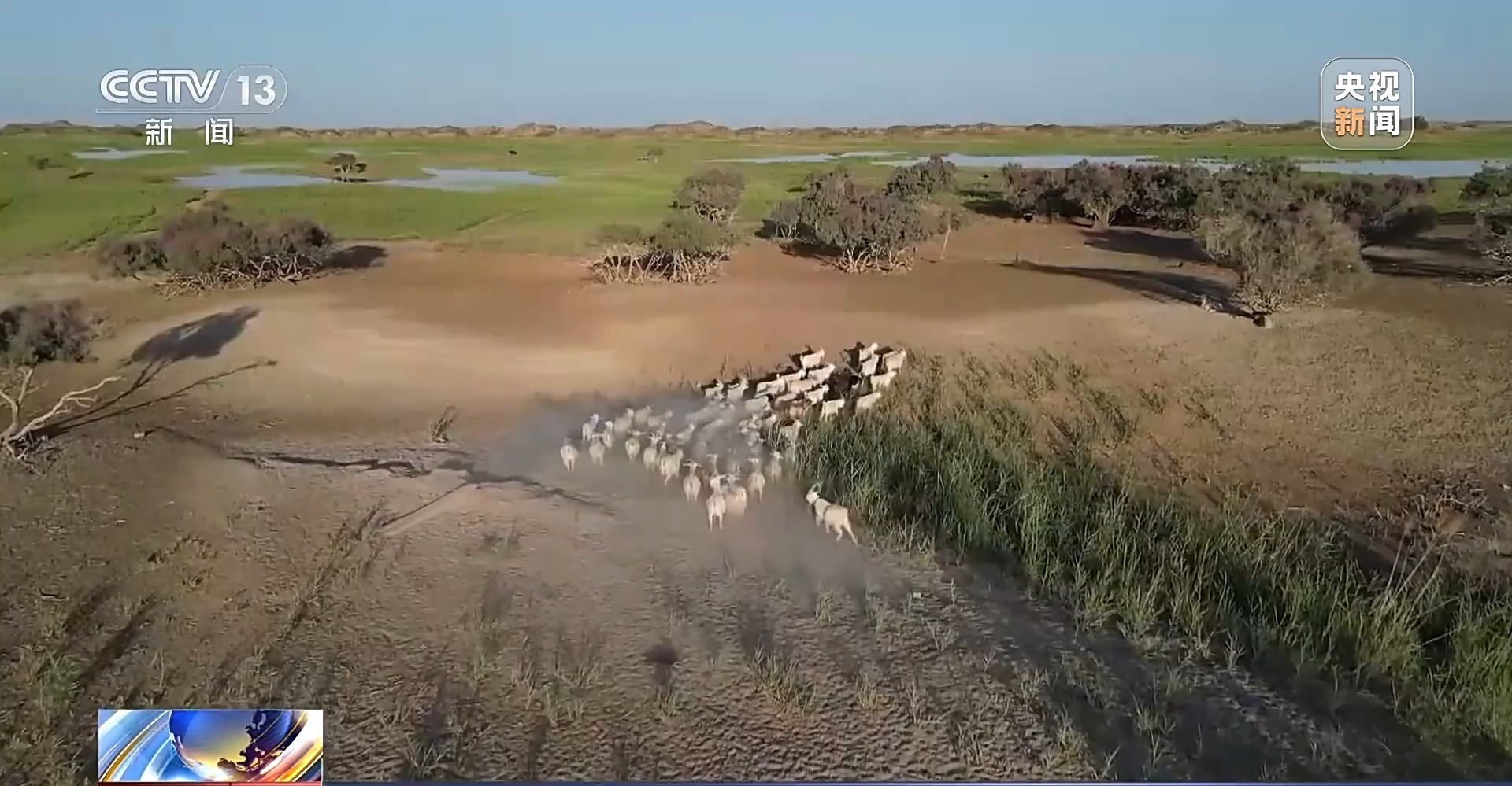 中國科學院新疆生態(tài)與地理研究所研究員 凌紅波:黃羊不怕人了,閑庭信步地在那兒散步呢。這就是人與自然和諧相處。
