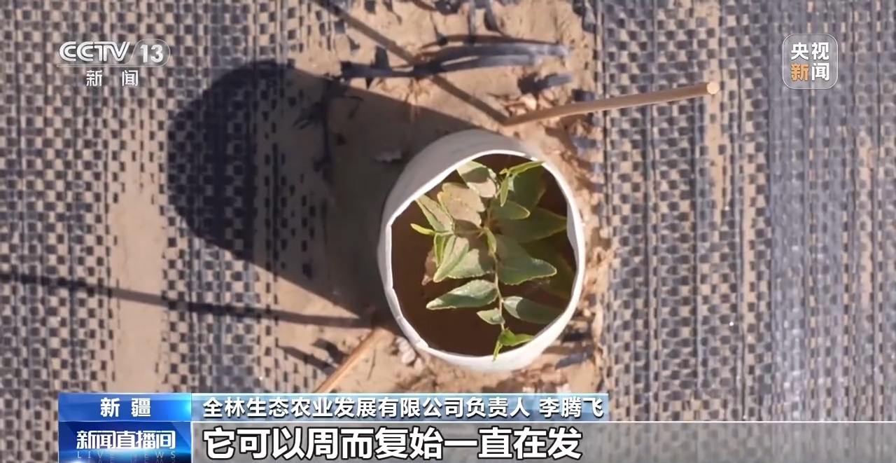 全林生態(tài)農(nóng)業(yè)發(fā)展有限公司負責人 李騰飛:沙塵暴這種摧殘之下,它可以周而復始一直在發(fā),只要它的根系不死,所以說我們稱它為“苗堅強”。