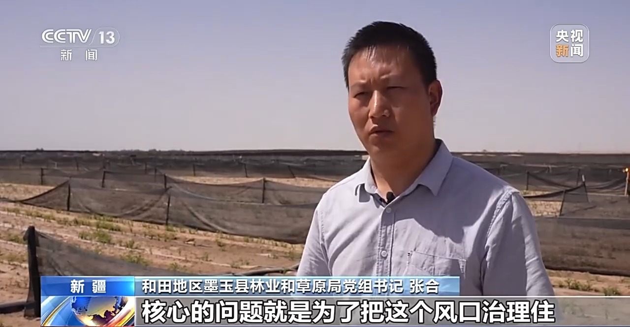 和田地區(qū)墨玉縣林業(yè)和草原局黨組書記 張合:我們選擇這塊區(qū)域鎖邊加厚,核心的問題就是為了把這個風口治理住,減少風沙對綠洲內(nèi)部的侵蝕。