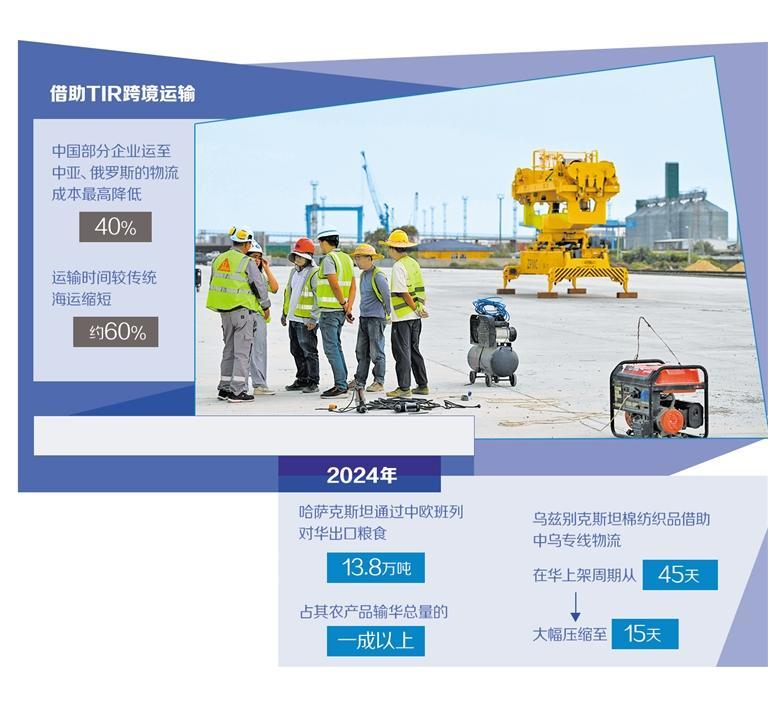 在區(qū)域產(chǎn)業(yè)鏈協(xié)同方面,TIR運(yùn)輸也為企業(yè)與成員國(guó)帶來(lái)了實(shí)實(shí)在在的收益:中國(guó)部分企業(yè)借助TIR跨境運(yùn)輸,將運(yùn)至中亞、俄羅斯的物流成本最高降低40%,運(yùn)輸時(shí)間較傳統(tǒng)海運(yùn)縮短約60%;2024年,哈薩克斯坦通過(guò)中歐班列對(duì)華出口糧食13.8萬(wàn)噸,占其農(nóng)產(chǎn)品輸華總量的一成以上;烏茲別克斯坦的棉紡織品借助中烏專線物流,在華上架周期從45天大幅壓縮至15天。在產(chǎn)業(yè)鏈協(xié)同層面,汽車零部件、電子元件等中間品成了跨境電商新增長(zhǎng)點(diǎn),標(biāo)志著區(qū)域合作正從商品貿(mào)易向產(chǎn)業(yè)鏈深度融合升級(jí),通過(guò)降成本、提效率、拓品類,實(shí)現(xiàn)了上下游產(chǎn)業(yè)鏈的互利共贏。