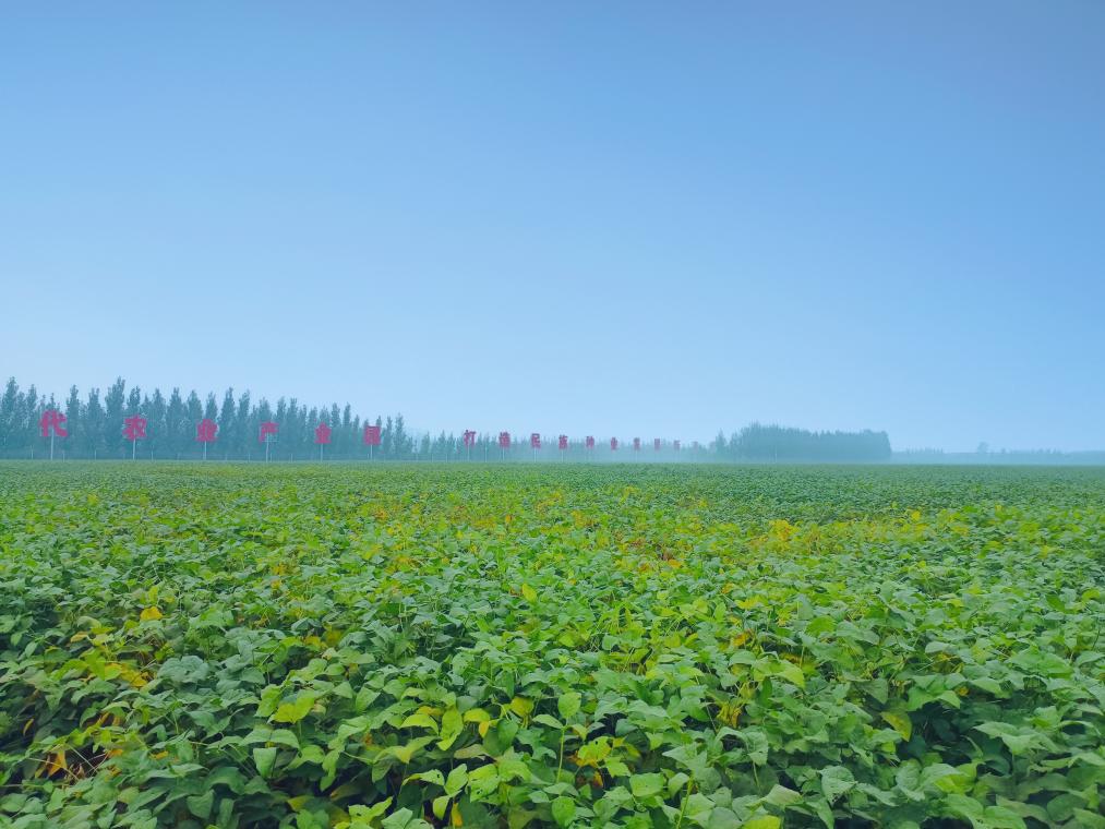 在山東省濟(jì)寧市嘉祥縣國(guó)家現(xiàn)代農(nóng)業(yè)產(chǎn)業(yè)園大豆原種繁育基地,一片片大豆長(zhǎng)勢(shì)喜人。(受訪者供圖)