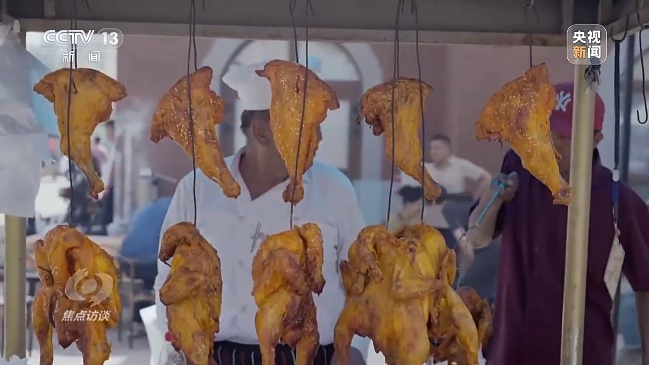 在新疆尉犁縣達西村,一年一度的羅布人民俗燒烤節(jié)上,各民族的村民用烤肉、烤魚等特色美食,招待從全國各地來的客人。