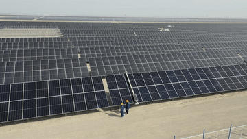 如今由太陽能光伏板匯聚成“藍色海洋”