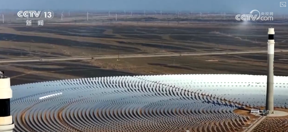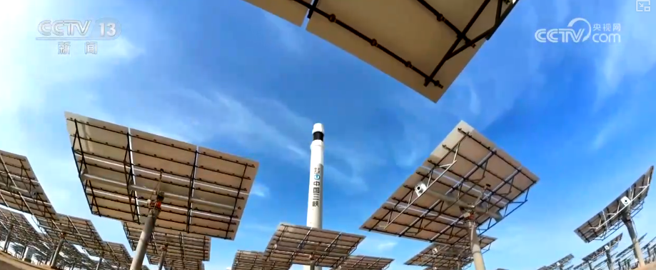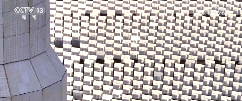 園區(qū)中,23000多面定日鏡如同一個個精準(zhǔn)的“追光者”,通過智能控制系統(tǒng)實(shí)時追蹤太陽軌跡,將分散的太陽光集中反射到高達(dá)200多米的吸熱器上,再通過大容量熔鹽儲熱系統(tǒng),實(shí)現(xiàn)24小時連續(xù)穩(wěn)定供電。