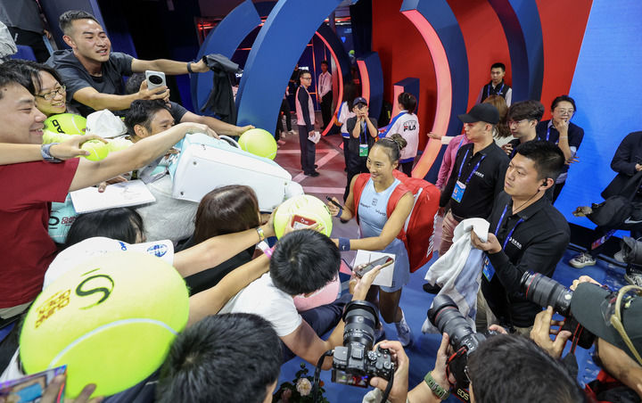 今年中網(wǎng),中國(guó)“金花”鄭欽文的傷愈回歸備受期待。9月27日,鄭欽文迎來(lái)復(fù)出后的首場(chǎng)比賽,現(xiàn)場(chǎng)上座率超過(guò)九成,當(dāng)日國(guó)家網(wǎng)球中心入園人數(shù)超4.5萬(wàn)人次,創(chuàng)下中網(wǎng)賽事歷史新高。雖然鄭欽文在女單第三輪因傷退賽,但中國(guó)球員近年來(lái)在國(guó)際賽場(chǎng)的持續(xù)突破,已在中國(guó)掀起一股網(wǎng)球文化熱潮?!笆弧逼陂g,中網(wǎng)上座率保持高位,吸引天南地北的球迷齊聚京城,共襄網(wǎng)球盛宴。