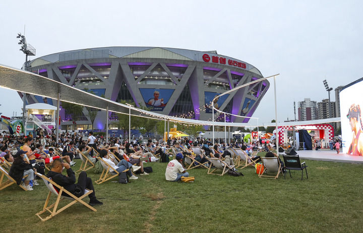 國(guó)家網(wǎng)球中心今年完成升級(jí)改造,進(jìn)一步完善訓(xùn)練區(qū)和觀賽區(qū)的設(shè)施和服務(wù),為運(yùn)動(dòng)員和球迷帶來(lái)一場(chǎng)“網(wǎng)球盛宴”。今年中網(wǎng)期間,園區(qū)西側(cè)特別設(shè)置了兩塊直播大屏,觀眾進(jìn)入園區(qū)可以在草地躺椅上觀賽,周圍配有餐飲店和官方授權(quán)商品店,讓球迷在北京秋日微風(fēng)中欣賞精彩比賽、歡度國(guó)慶假期。