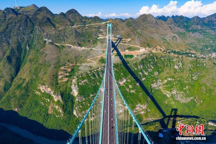 今年國慶中秋假期,剛于9月底通車的貴州花江峽谷大橋成為當?shù)責衢T打卡地。