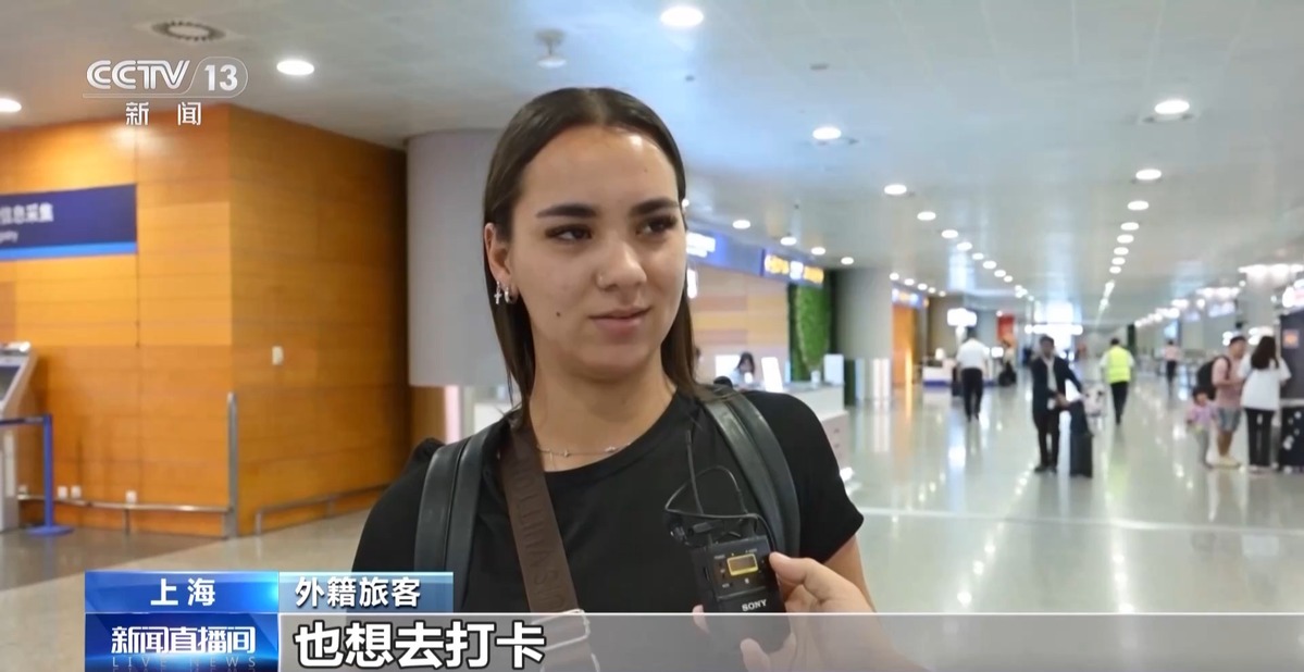 外籍旅客:我想去參觀那座標(biāo)志性大樓(東方明珠),我還看到上海有很多超可愛的咖啡館,也想去打卡。