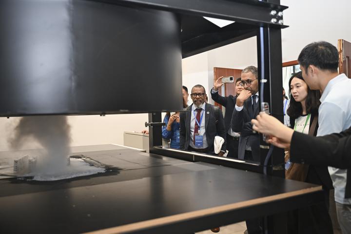 2025年6月23日,聯(lián)合國開發(fā)計劃署駐華代表處和同濟大學(xué)正式宣布啟動“聯(lián)合國開發(fā)計劃署-同濟大學(xué)城市防災(zāi)韌性創(chuàng)新實驗室(RISE Lab)”。該實驗室聚焦推進全生命周期智能防災(zāi)減災(zāi),以及超大型城市韌性基礎(chǔ)設(shè)施建設(shè),為城市防災(zāi)減災(zāi)提供智慧支持。這是與會嘉賓在參觀同濟大學(xué)土木工程防災(zāi)減災(zāi)全國重點實驗室。