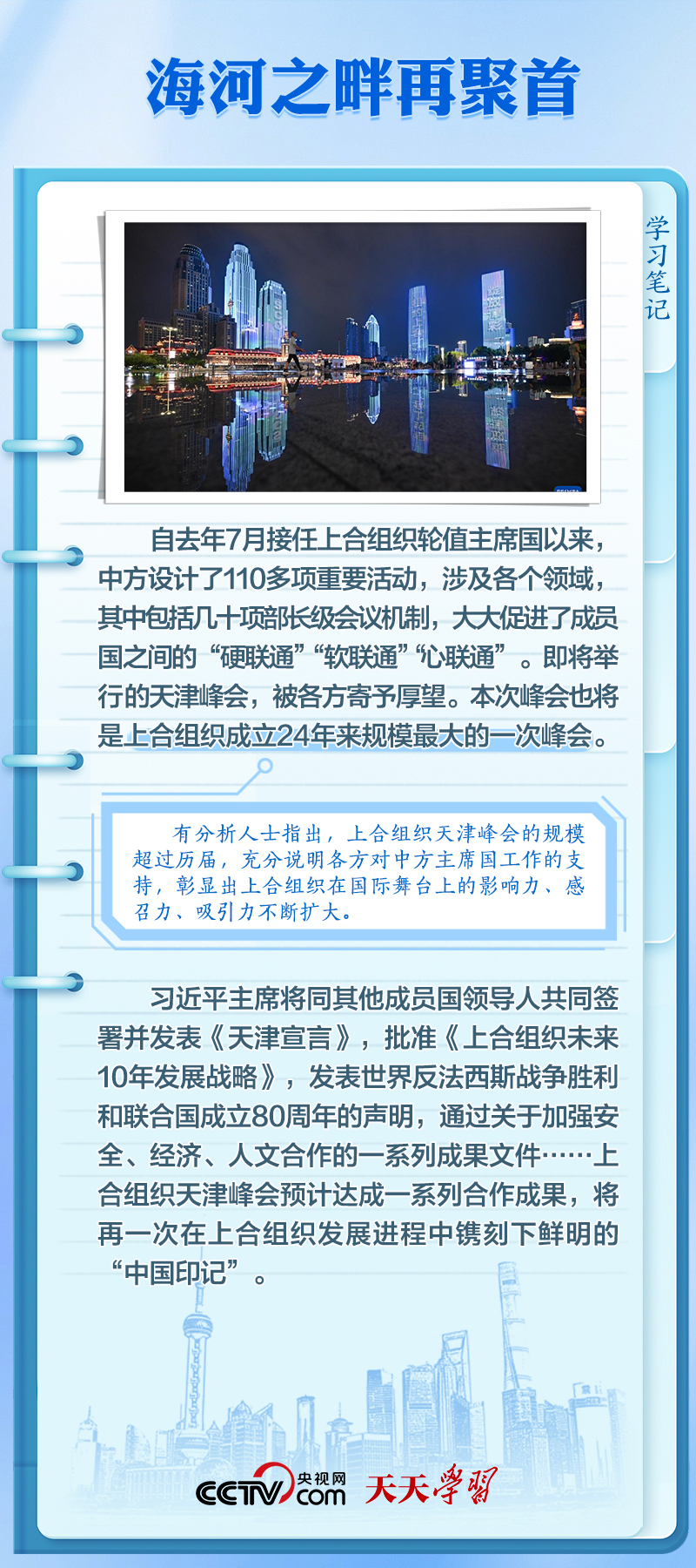 天天學習8月31日至9月1日,2025年上海合作組織峰會將在天津舉行。習近平主席將同20多位外國領(lǐng)導人和10位國際組織負責人聚首海河之濱,出席上合組織成立以來規(guī)模最大的一次峰會。