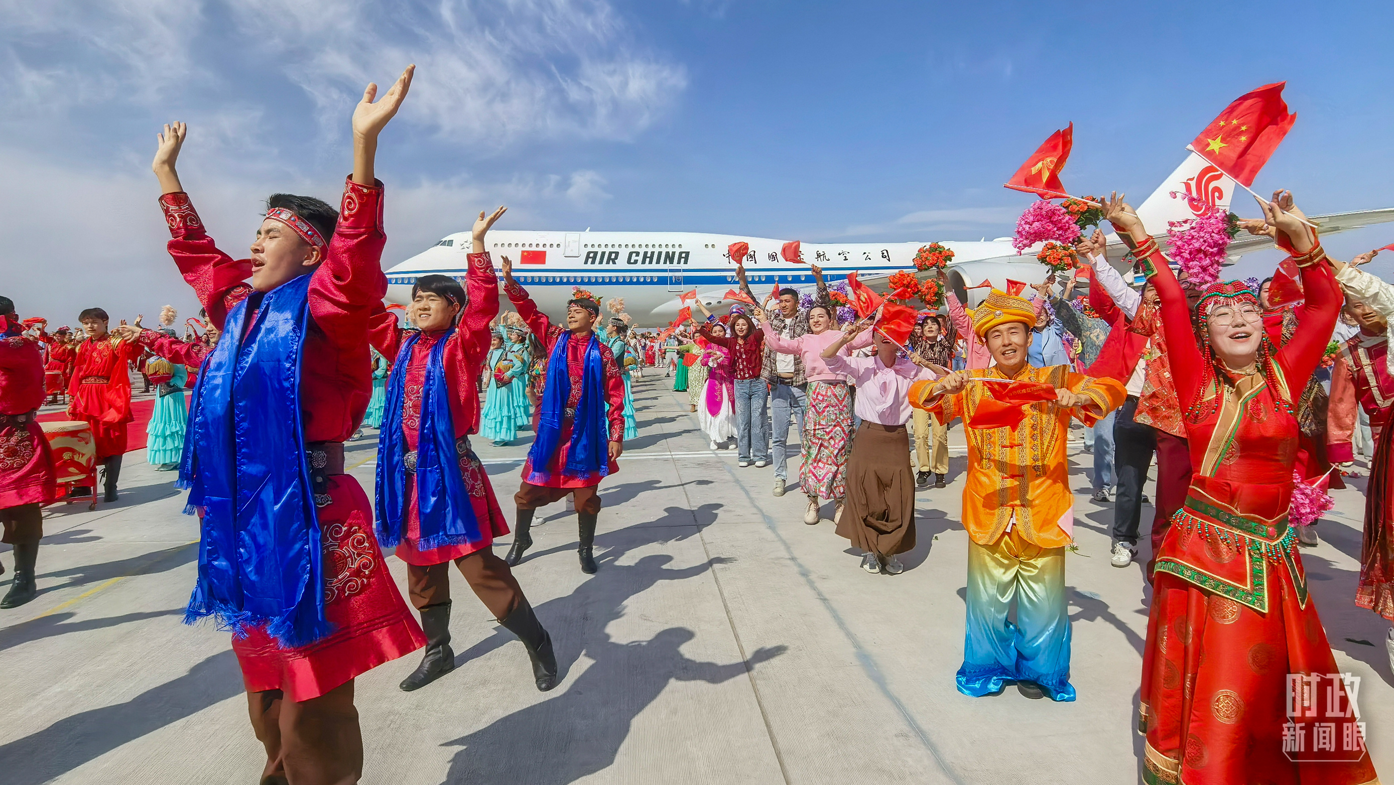 烏魯木齊天山國(guó)際機(jī)場(chǎng),新疆各族群眾熱烈歡迎總書記到來。(總臺(tái)央視記者范凱、史偉拍攝)