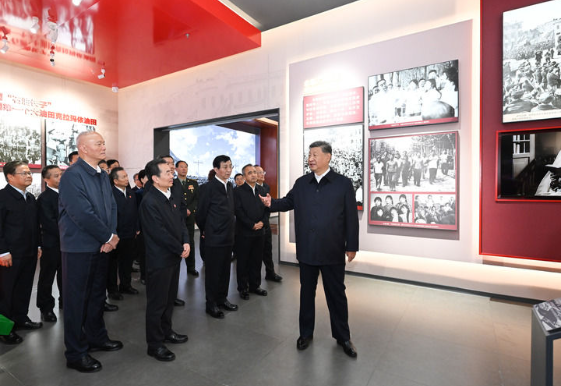 9月24日上午,中共中央總書記、國家主席、中央軍委主席習近平在烏魯木齊文化中心展覽館參觀新疆維吾爾自治區(qū)成立70周年主題成就展。新華社記者 謝環(huán)馳 攝